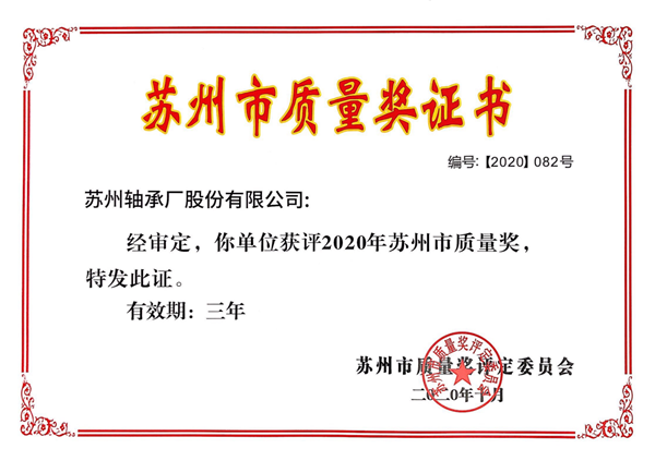 2020年蘇州市質(zhì)量獎(jiǎng)