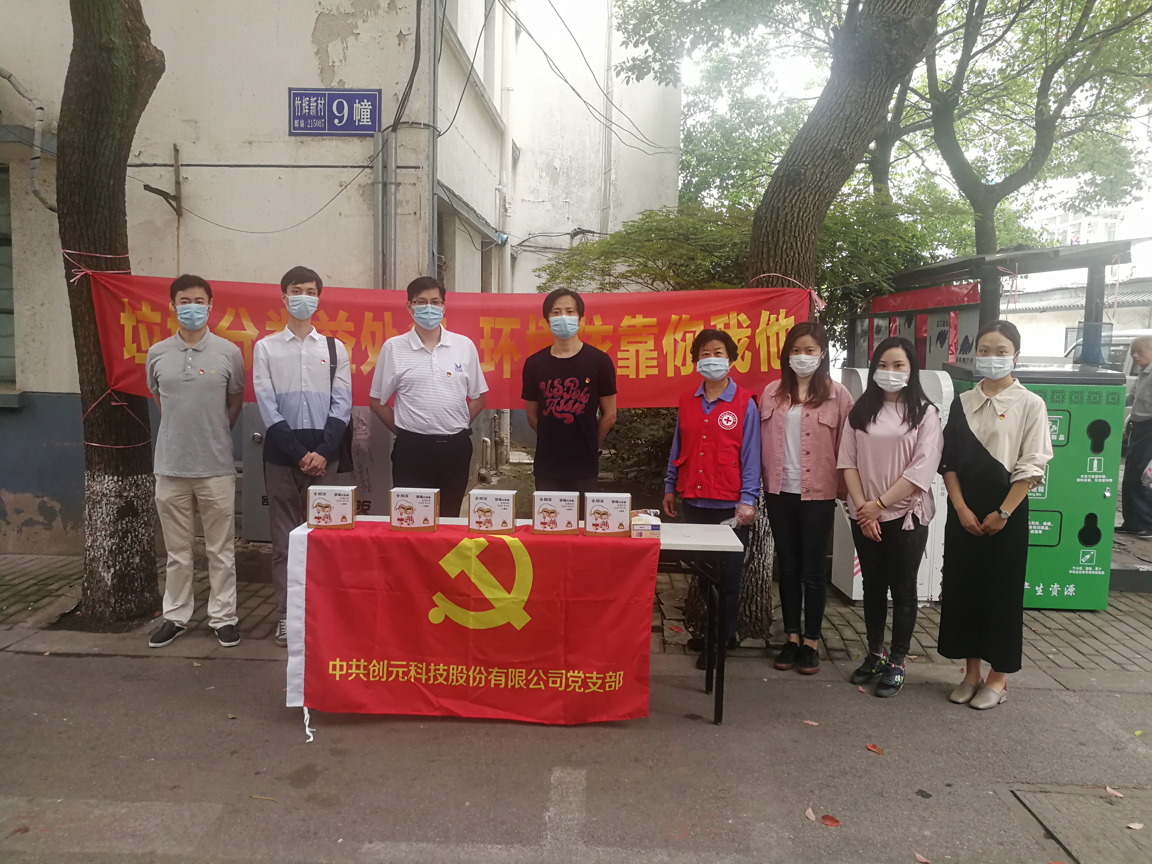 5月29日,創元科技支部黨員赴竹輝社區宣傳垃圾分類,協助環衛人員開展工作,向居民發放宣傳冊和環保垃圾袋。