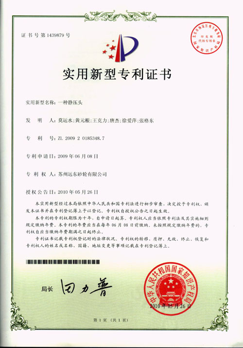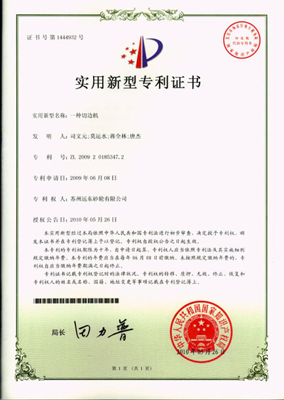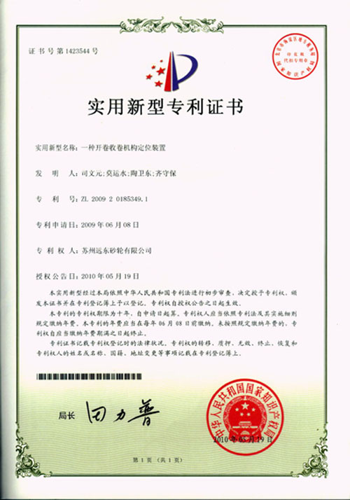 近日,國家知識(shí)產(chǎn)權(quán)局審核通過了公司控股子公司——蘇州遠(yuǎn)東砂輪有限公司開發(fā)研制并組織申請的三項(xiàng)實(shí)用新型專利(開卷收卷機(jī)構(gòu)定位裝置、設(shè)計(jì)的靜壓頭和切邊機(jī)),授予公司專利權(quán)并頒發(fā)實(shí)用新型專利證書。(遠(yuǎn)東公司提供)