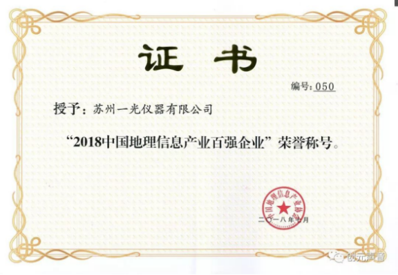 近期,2018中國地理信息產業大會在海南海口召開。會上,公司控股子公司蘇州一光被授予“2018中國地理信息產業百強企業”榮譽稱號。